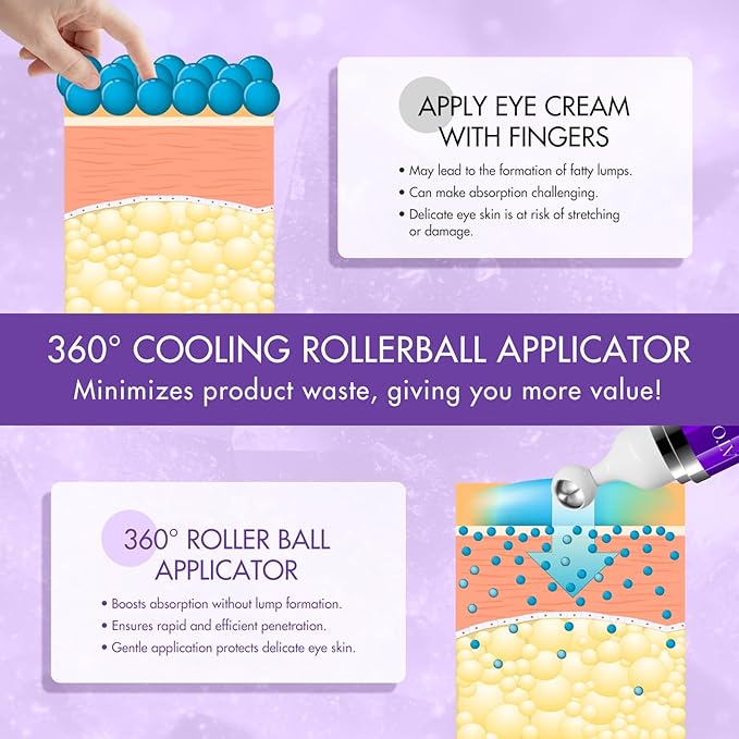 - EYE ROLLER MASSAGE BALL - Eye serum with 360° eye roller massage balls helps to stimulate blood circulation around the eye area, enhance serum absorption, and reduce puffiness and bags under the eyes.