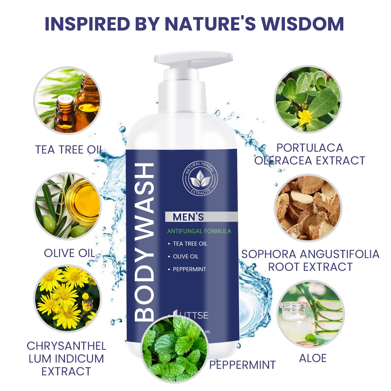 - Natural Herbal Ingredients: Infused with natural herbal ingredients like tea tree oil and mint, Uttse body wash offers a botanical solution for eczema and folliculitis relief, making it a gentle yet effective cleanser for men. Experience the purity and power of nature with every wash, as our formula works to calm and heal your skin.