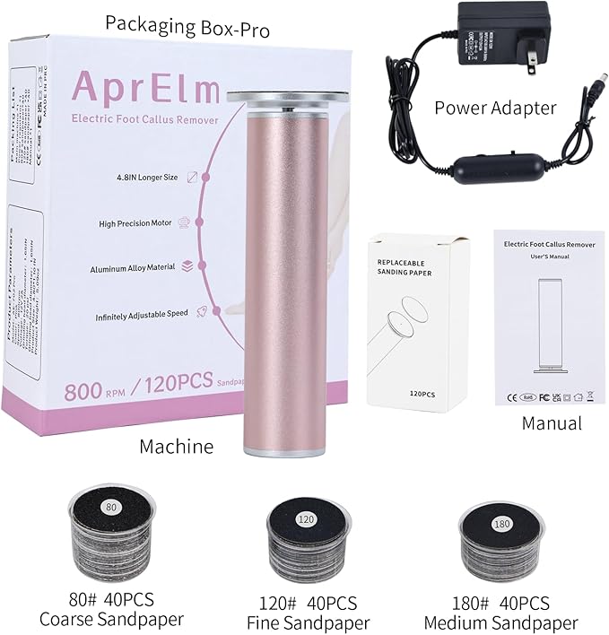 4.8IN Longer Electric Foot Callus Remover with 120pcs Sandpaper Discs, Professional Aluminum Callus Remover for Feet, Stepless Speed Control Pedicure Tools for Dead Skin