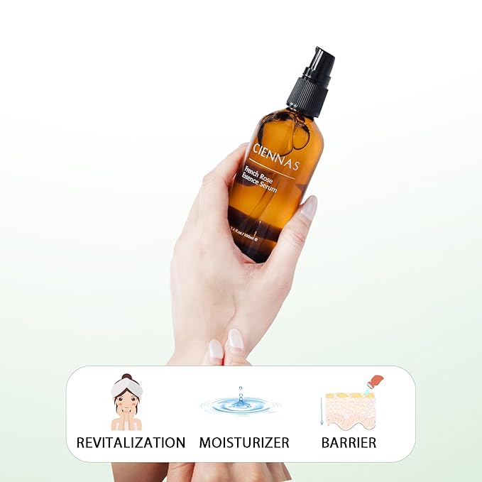 - ๐น NATURAL ROSE INFUSED ESSENCE FOR GLOWING SKIN Transform your skincare routine with the luxurious hydration of CIENNAS Rose Infusion Essence. Crafted from pure rose hydrosol and enriched with rose essential oil, this serum deeply hydrates, calms, and brightens, giving sensitive skin the gentle care it deserves. Perfect for achieving that fresh, dewy glow every day.