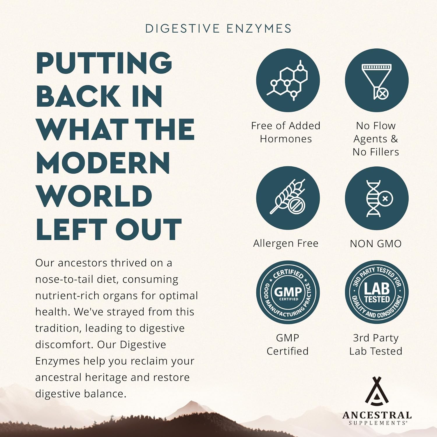 Ancestral Supplements Digestive Enzymes for Women & Men, 90 Capsules, with Probiotics and Grass Fed Beef Organs, Supports Gut Health, Digestive Health & Nutrient Absorption, Allergen Free, Non GMO