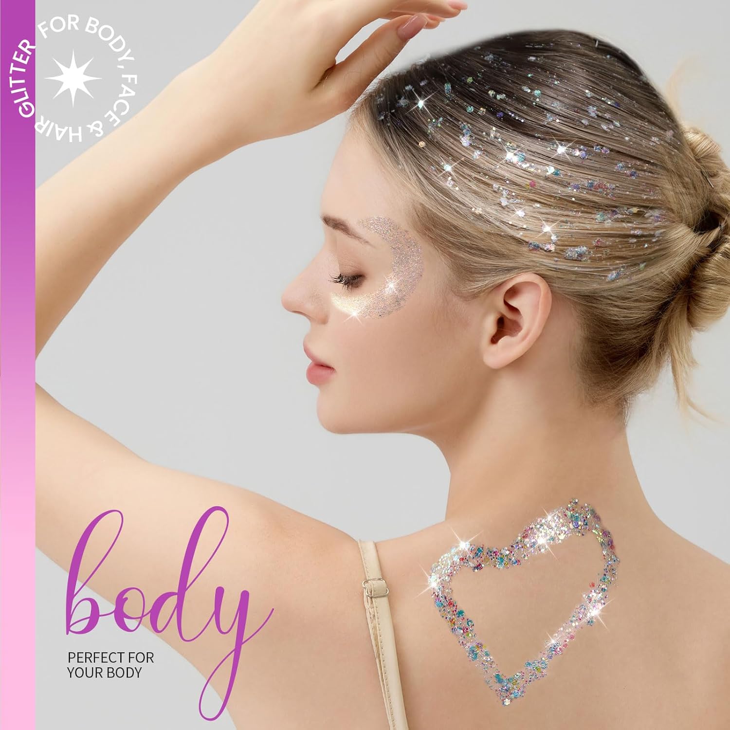 - Glue Free and Skin Friendly Formula Body Glitter Gel - Specially formulated for body art, Teenitor's body glitter gel adheres perfectly to skin without the need for any additional glue. This makes it incredibly easy to apply, ensuring a comfortable and long-lasting sparkle that's gentle on your skin and hair