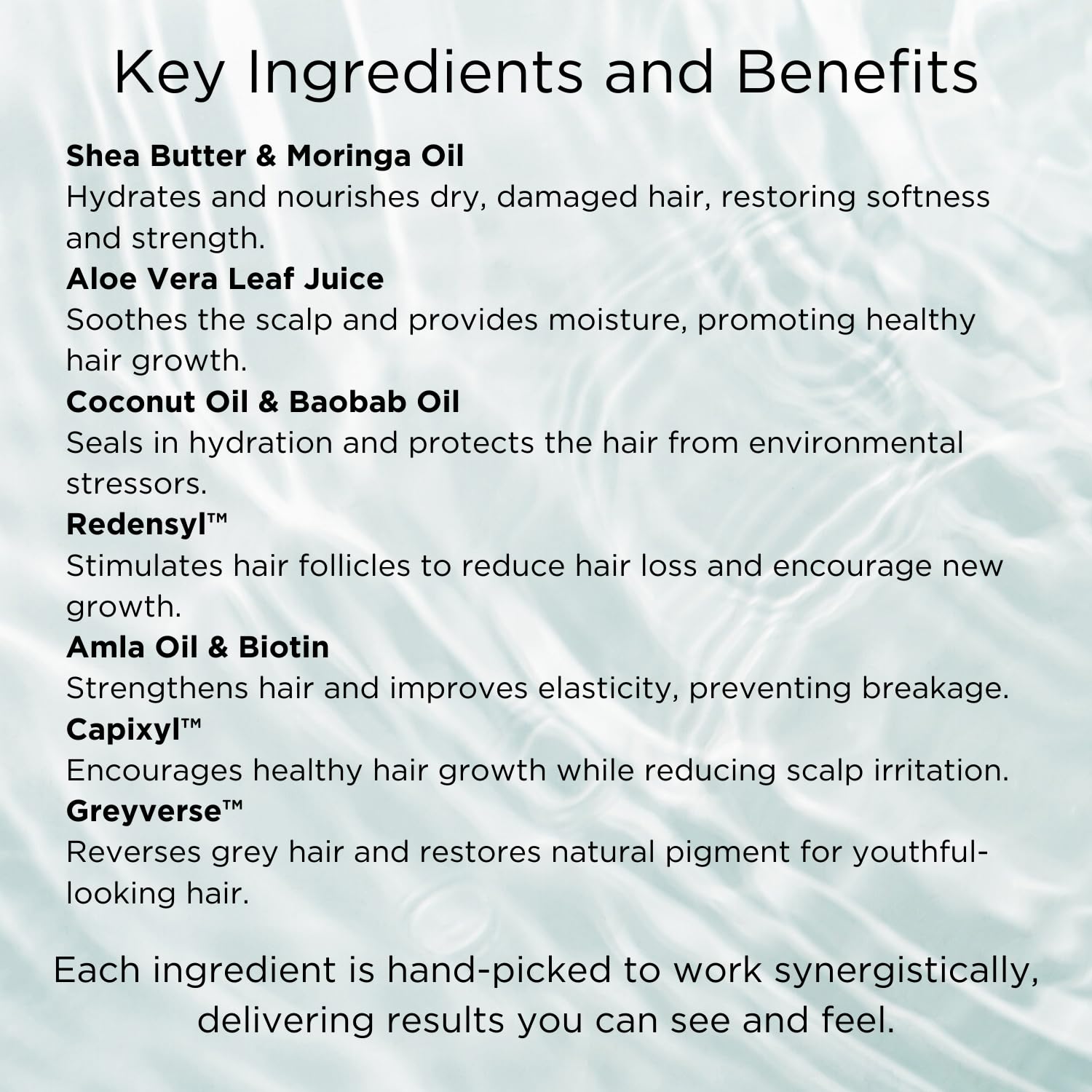 - Age-Defying & Anti-Grey Formula: Formulated with powerful ingredients like GREYVERSE and Redensyl, this trio addresses signs of aging, helping to restore natural hair color, reduce greying, and encourage fuller, thicker hair.