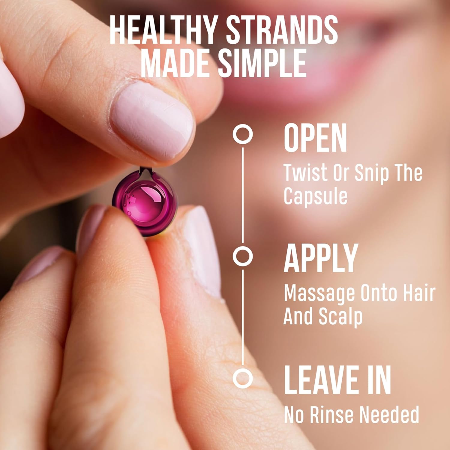 - Easy to Use Capsules - Use on dry or damp hair. Twist or snip the capsule to open. Massage oil into your scalp and hair. Leave in - no need to rinse