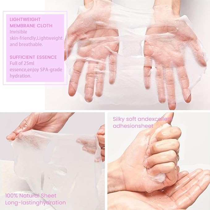 • FACIAL SKINCARE SHEET MASK:This premium women's skin care mask is silky smooth,moisturizing,refreshing and has increased efficacy and adhesion to block evaporation and lock in moisture for a hydrating effect that lasts all day