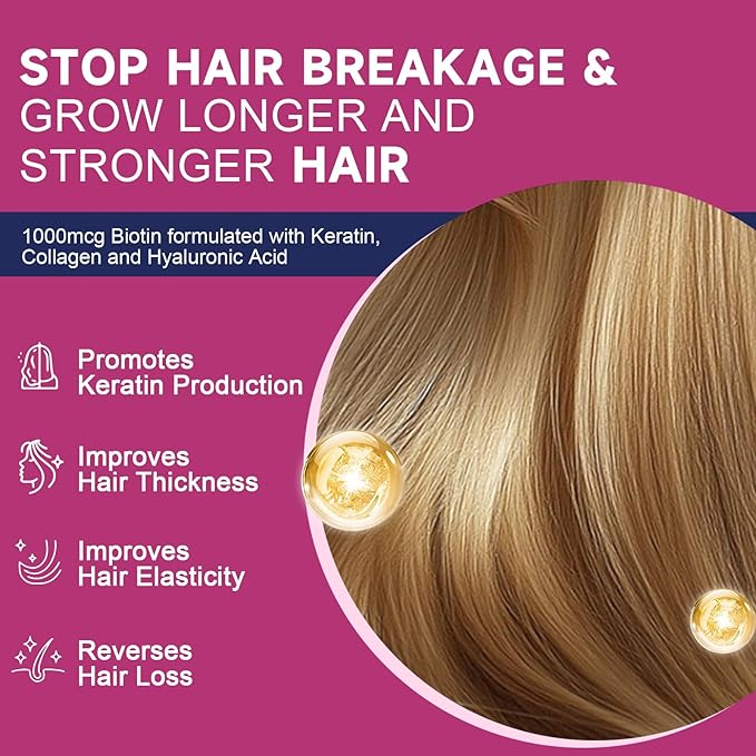 - HAIR HEALTH & SHINE COMPLEX: ZEBORA Hair Vitamins promote thicker, fuller, healthier hair. Our formula is enriched with Biotin, combined with Keratin and a proprietary blend. Keratin creates a protective layer that prevents collagen loss, while Biotin works synergistically with the proprietary blend to help reduce hair loss and enhance the overall strength of your hair. Additionally, the formula contains Hyaluronic Acid to moisturize hair and reduce frizz.