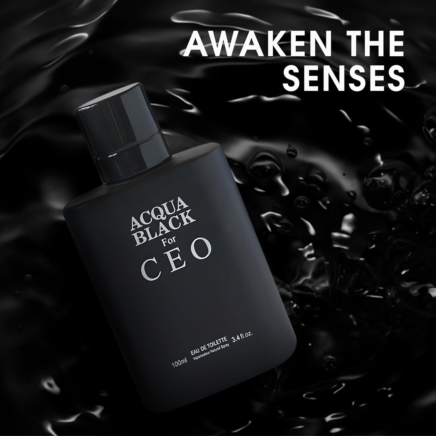 Aqua Black Ceo, Eau De Toilette Spray Perfume, Fragrance For Men- Daywear, Casual Daily Cologne Set With Deluxe Suede Pouch- 3.4 Oz Bottle- Ideal EDT Beauty Gift For Birthday, Anniversary