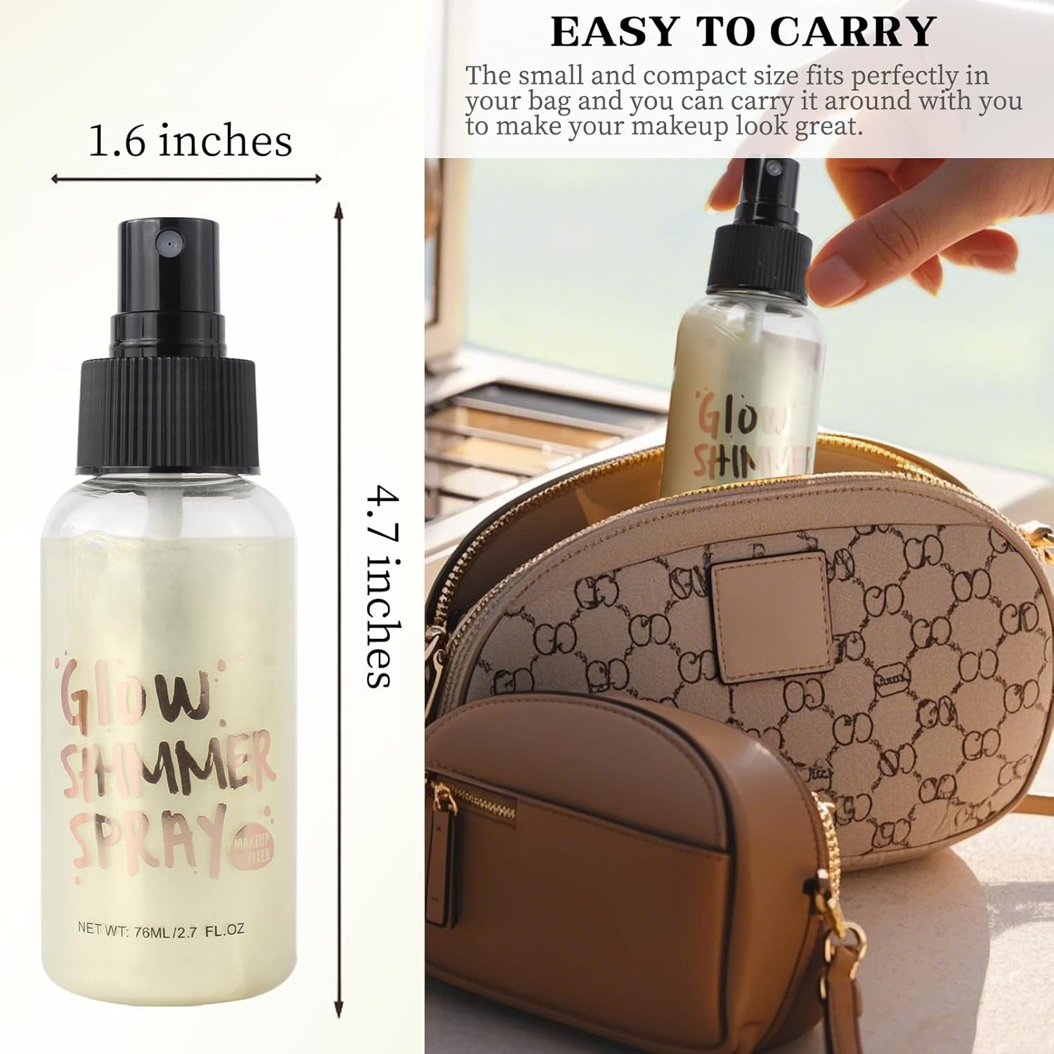 - Safe And Easy To Clean: This glitter body spray is made of pure natural ingredients, suitable for all skin types. In addition, it has a lightweight texture that won't make your skin feel heavy, maintaining the natural translucent effect of the skin. It can be easily washed off with shampoo and water