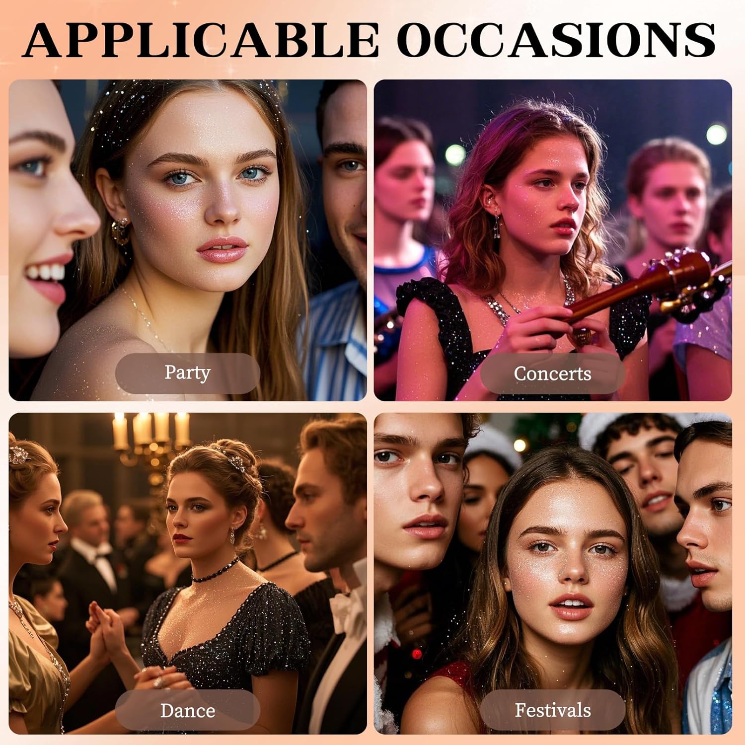 - Application: This body shimmering spray is suitable for use under lights and in dark scenes and is commonly used for singer's tours, rave accessories, bars, nightclubs, stage make-up and more. It matches perfectly with any make-up and clothing, giving you a glamorous glow and confidence, showing your unique charm.