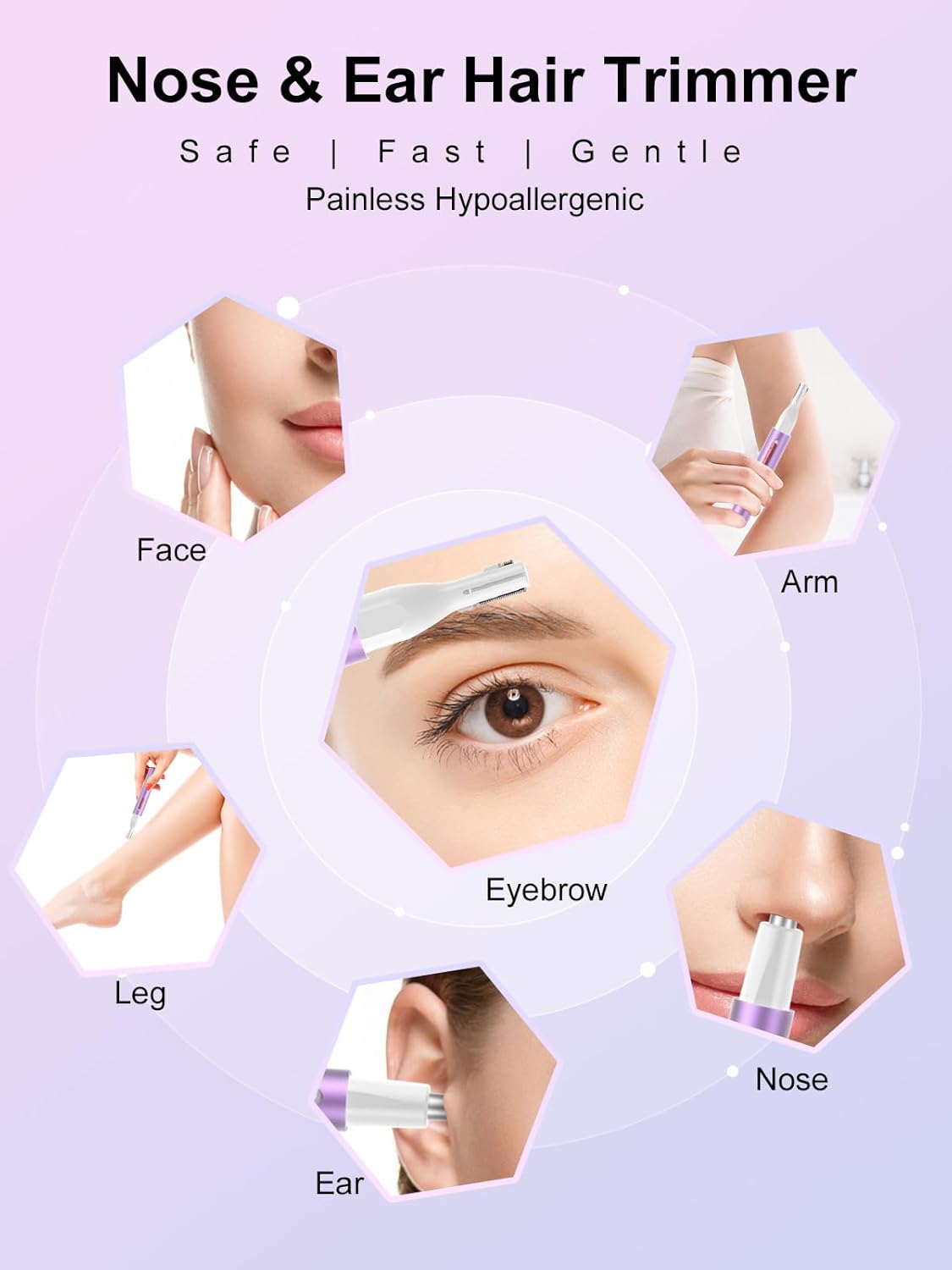 - 【Compact & Portable】Pocket-size, lightweight nose and ear hair trimmer for women and men with a sleek, compact design—easy to carry for on-the-go grooming. Also a versatile eyebrow trimmer/facial hair remover for travel, gym, or office.