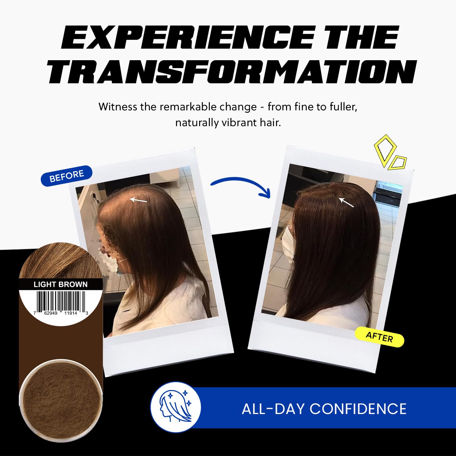 - All-Day Hold: Enjoy a worry-free day with hair fibers for thinning hair that stay put even in the most unpredictable weather; No need for constant touch-ups, our hair fibers provide lasting confidence whether at work, out with friends, or during an intense workout