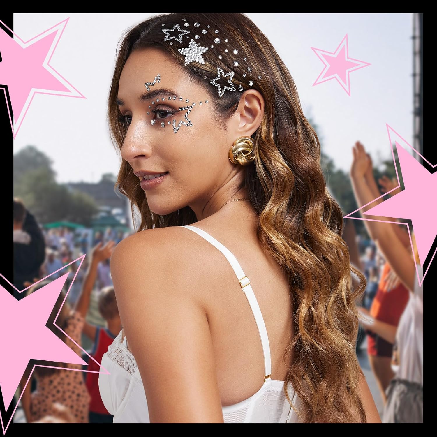 YGDZ Face Gems Face Jewels, Self Adhesive Hair Gems Festival Star Rhinestone Stickers for Face, Eye, Makeup, Body, Stick on Gems, Rave Accessories, Y2K Star Face Stickers for Kids, Women