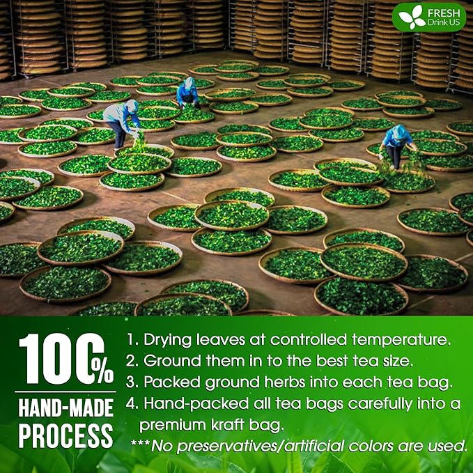 - ☘️ TULSI GREEN TEA BAGS MADE BY A HAND-MADE PROCESS: Tulsi Leaves and Green tea are picked at their flavorful/colorful peak and naturally sun-dried and roasted to perfection. We hand-select only the premium herbs for the utmost quality. Then we grind them into the best tea size. Next, we immediately pack it in eco-friendly tea bags. Lastly, we pack the tea bags into food-grade kraft bags for ultimate freshness.