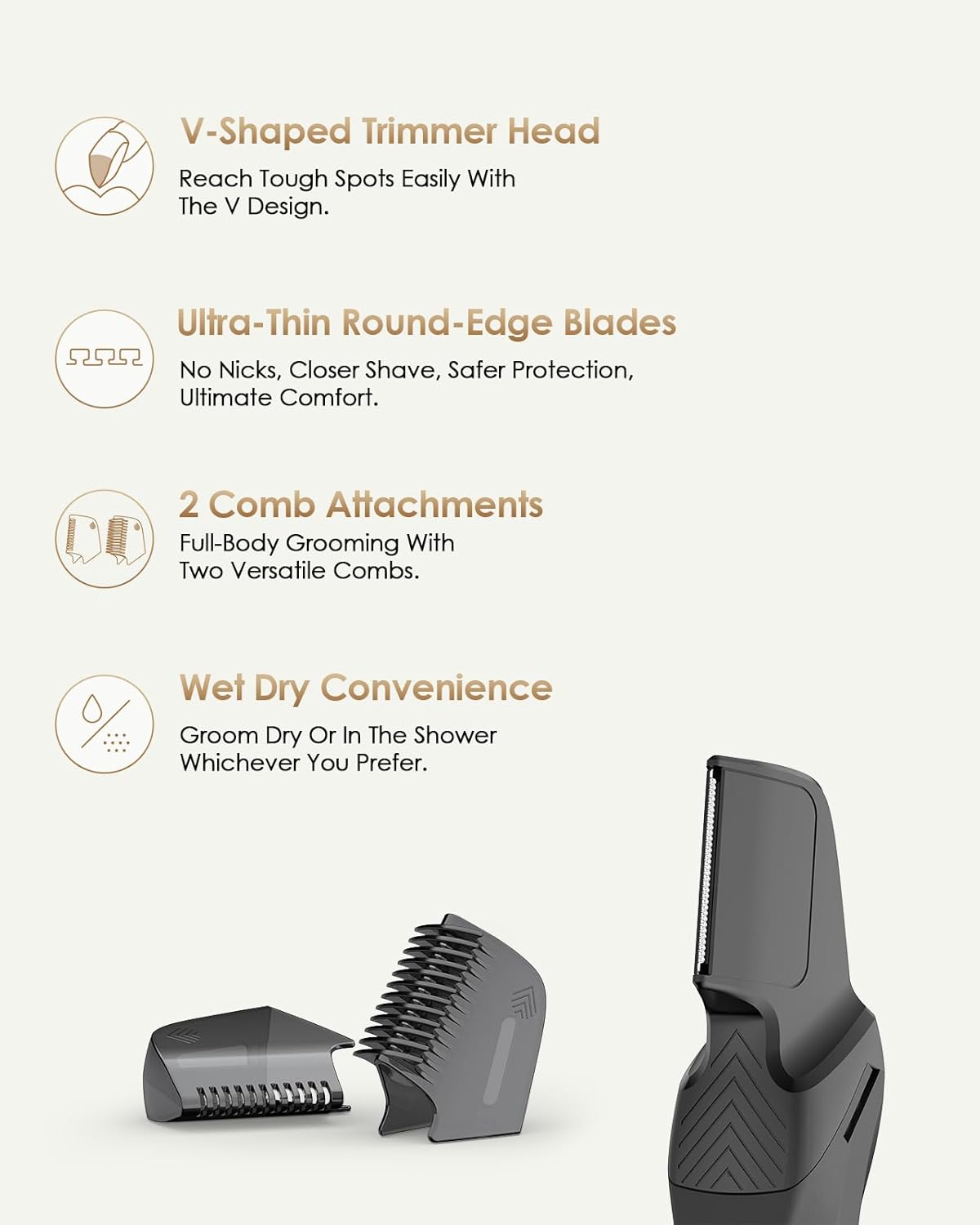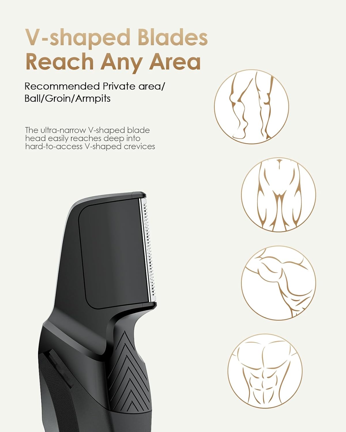 - Perfect for Grooming Multiple Body Areas: Expand your grooming possibilities! This V-shaped blade head allows you to trim more than just your groin. It’s designed for use on a variety of body areas, including the chest, underarms, back, and more. Perfect for Manscaped users who want a versatile grooming tool for their entire body