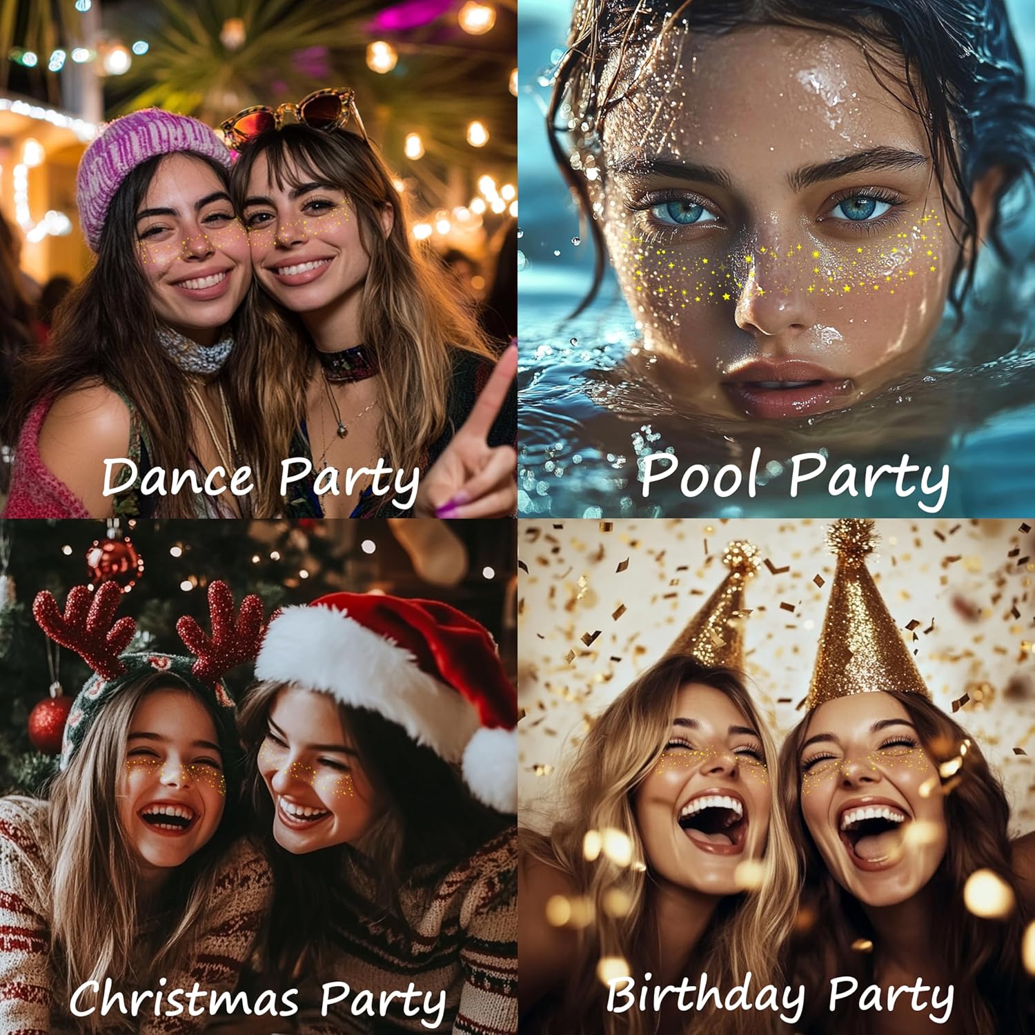 - LONG LASTING GLAMOUR - Easily elevate your beauty routine and stay flawless from morning till night with our cosmetic glitter speckle patches. These patches naturally adhere to the skin for a sophisticated, all-day shimmering effect. Whether it's a party, get-together, or special event, our glitter face patches will give you a glamorous glow and a long-lasting, glamorous look. Choose our speckle patches for a fairy-like, dreamy look every time.