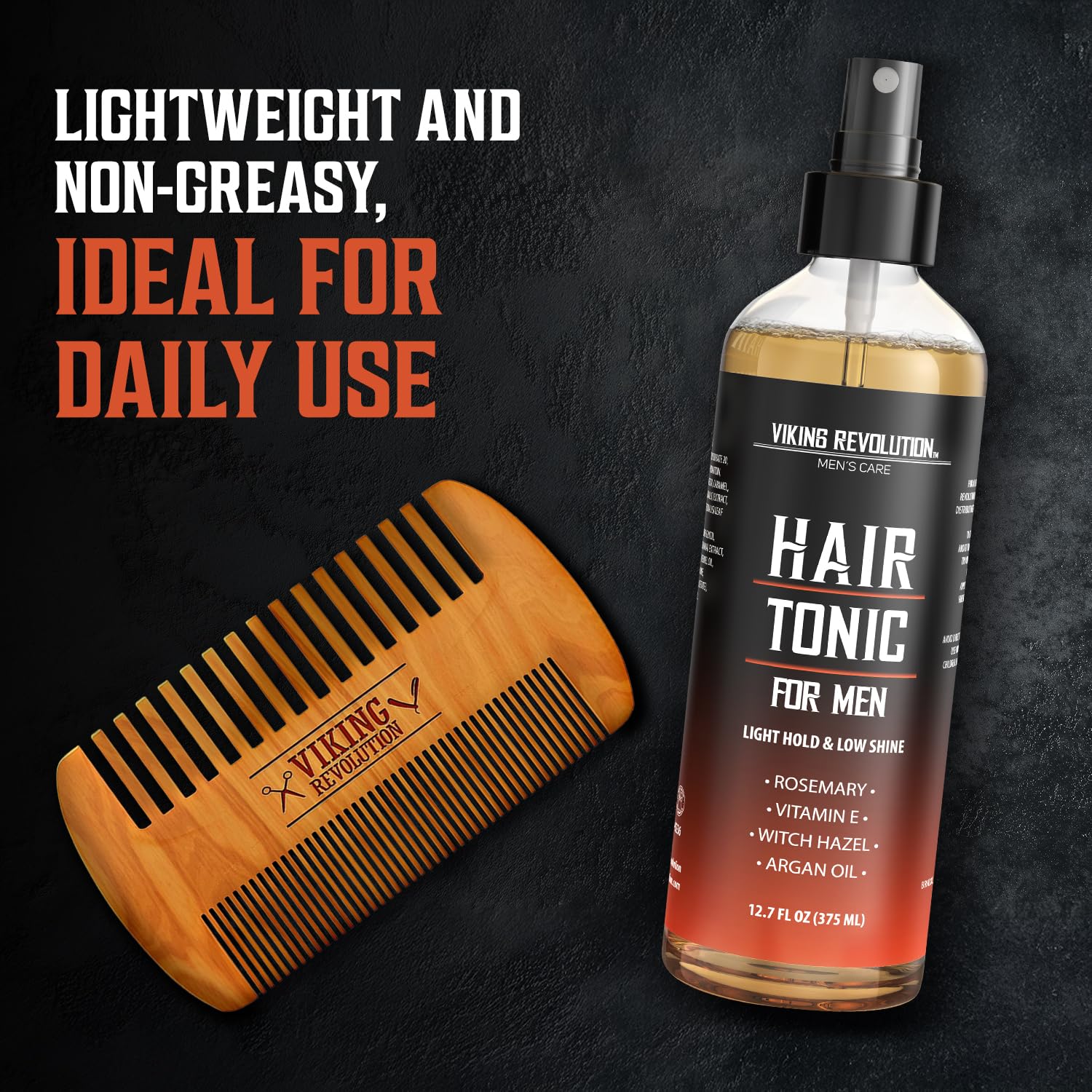 Viking Revolution Hair Tonic Men (12.7oz) - Hair Spray for Men with Sandalwood Scent - Texture Spray with Rosemary, Argan Oil, and Witch Hazel - Light Hold and Low Shine for Styling and Grooming