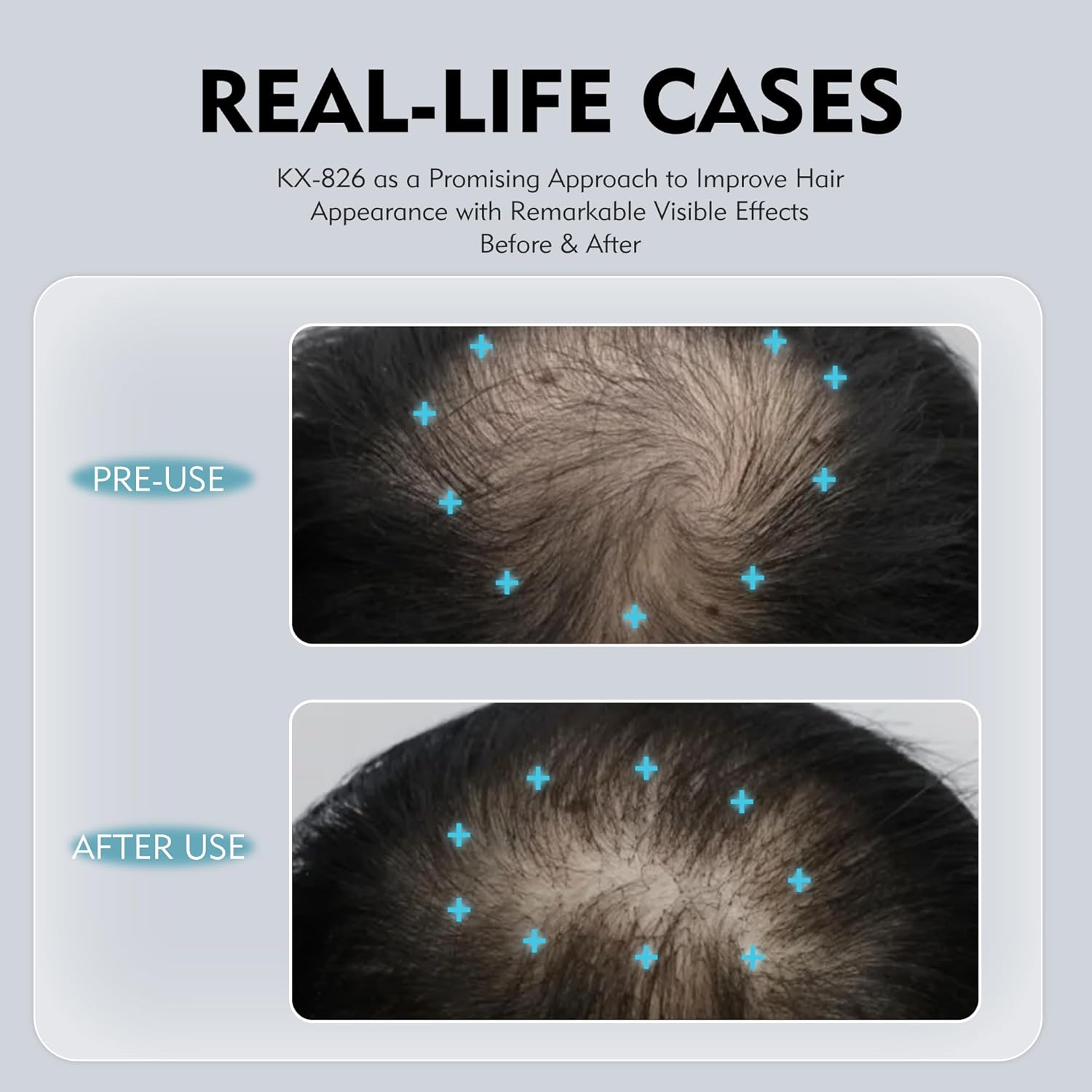 - [Scientifically Valid] Our hair thickening product's 0.5% core patented KX-826 ingredient is designed to block DHT, the main cause of hair loss. By preventing DHT from affecting your hair follicles, 826 helps restore healthy hair growth and reduces scalp oiliness. This breakthrough formula not only tackles hair thinning but also helps balance sebum production for a healthier scalp. Experience the rejuvenating effects and enjoy revitalized hair with our hair regrowth treatments.