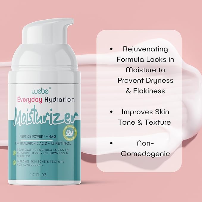 WEBE Hydration Snail Mucin Moisturizer – Anti-Aging Cream with Hyaluronic Acid, Retinol & Peptides for Deep Hydration, Wrinkle Reduction & Skin Renewal
