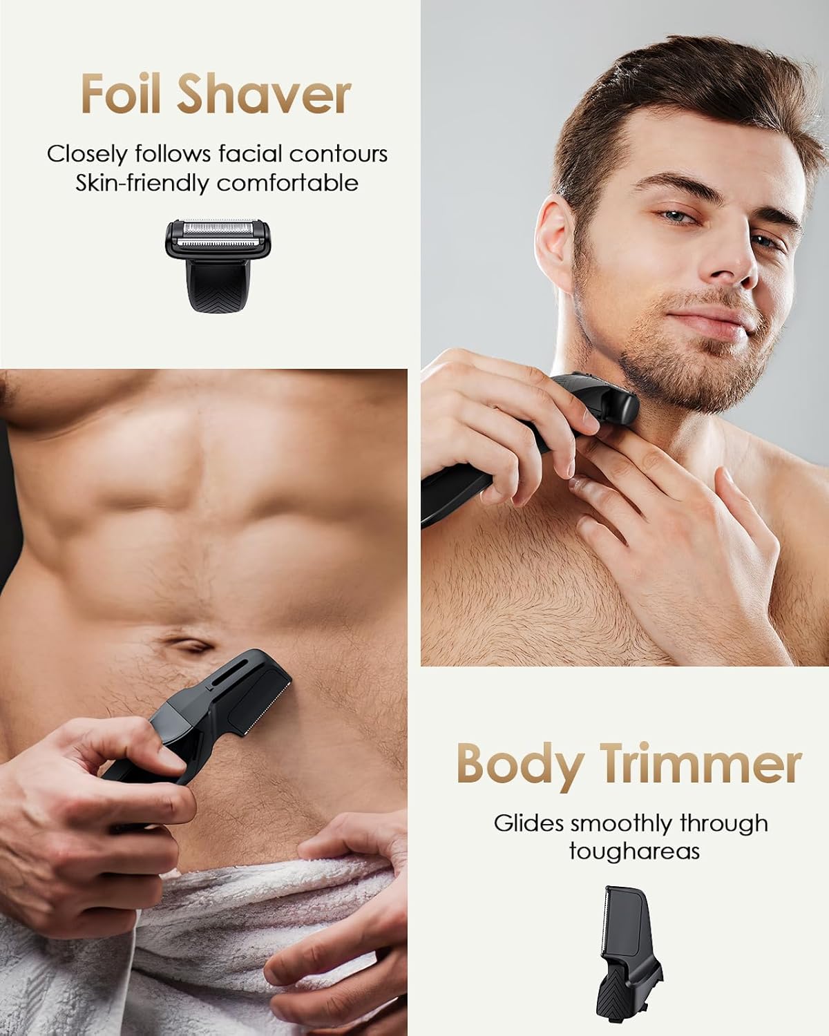 - Full-Body Grooming with Precision: The Foil Blade and V-Shaped Head is designed to handle all areas—from beard chest and legs to arms and groin—trimming as close as 0.1mm for a consistently smooth result