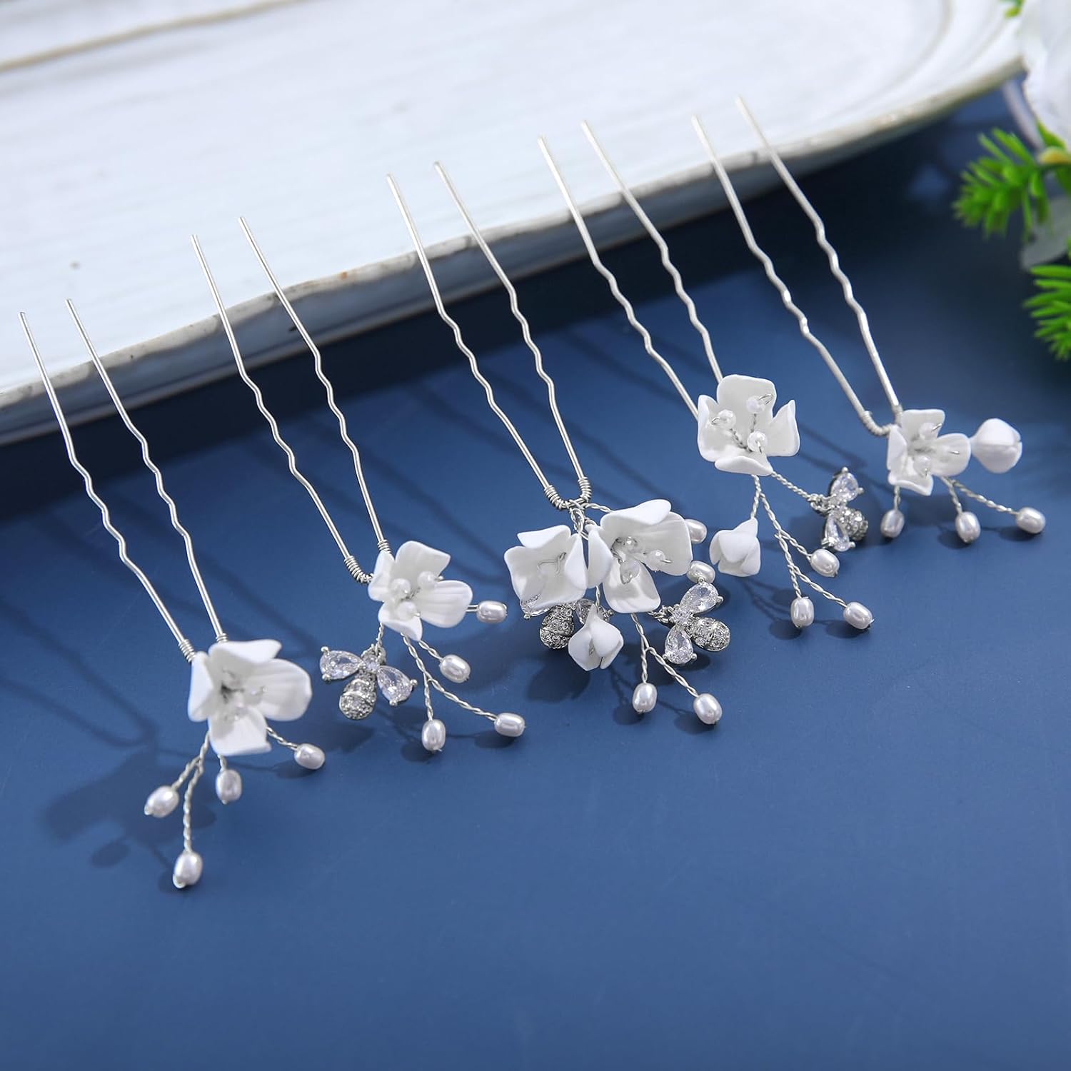 - ❀These wedding hair pins are made of polymer clay and metal alloy, soft alloy wire, 100% handmade and well crafted, lightweight and delicate with smooth surface. Vintage style makes bridal hair pins look exquisite and attractive, and can also give your hair more charm.