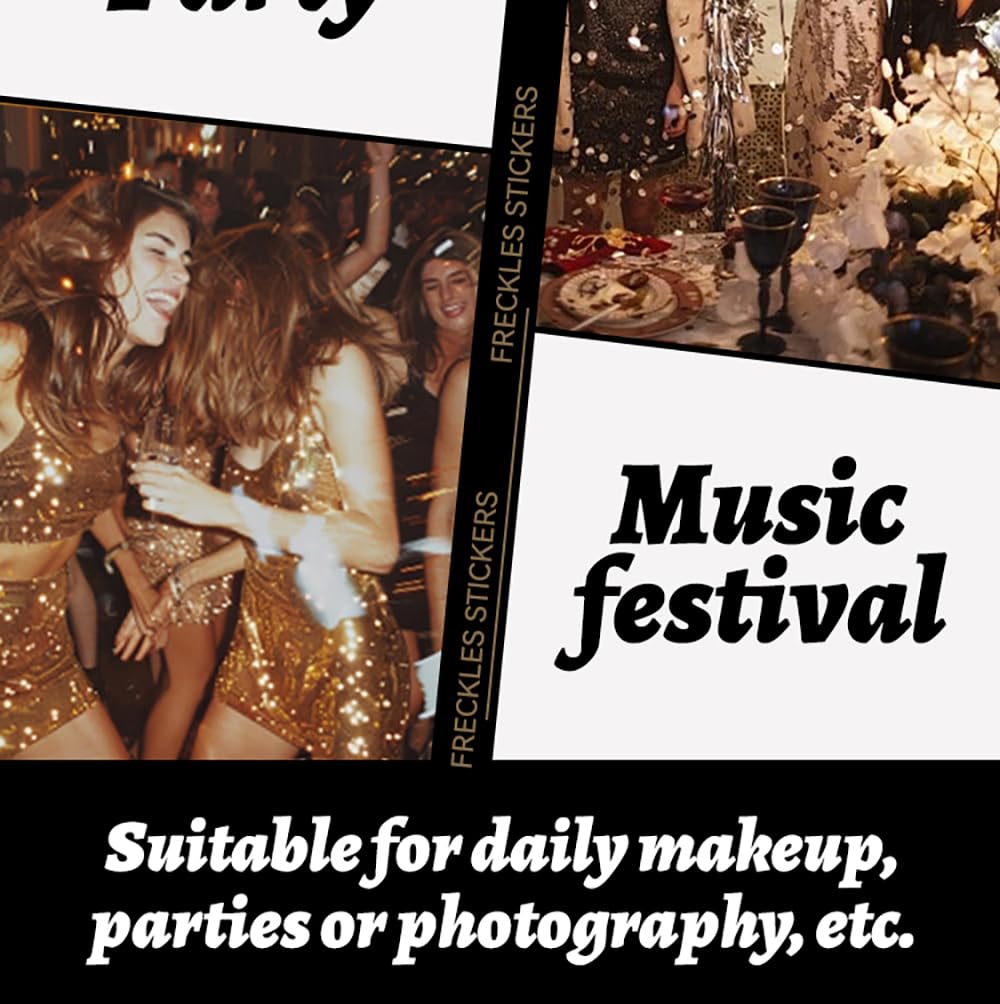 - VERSATILE USE - Unleash your creativity with our waterproof speckles, offering versatility that knows no bounds. Whether you're gearing up for a music festival, concert, beach day, or any special occasion, these makeup patches are the perfect accessory to elevate your look. Their versatility extends beyond traditional speckle makeup, making them ideal for adding a touch of whimsy to Halloween costumes or enhancing your natural beauty for everyday wear.
