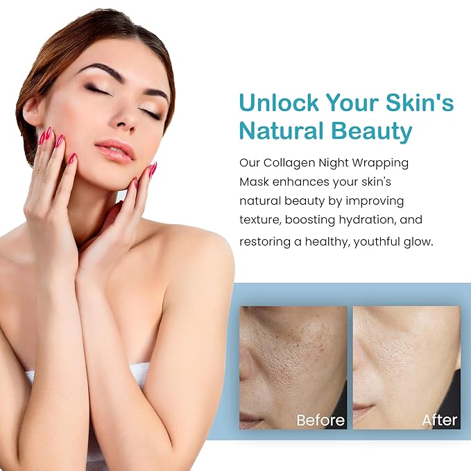 - Hydrating and Moisturizing: The collagen night wrapping mask delivers intense hydration and moisturization, locking in nutrients overnight to rejuvenate and plump the skin, leaving it smooth, soft, and refreshed.