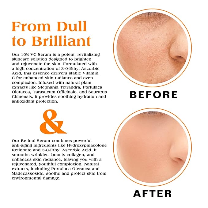- Kickstart your day: Infused with Vitamin C, Hyaluronic Acid, and MSM, our Vitamin C serum supports even skin tone, combats free radicals, and stimulates collagen production, enhancing radiance while reducing dark spots, fine lines, and wrinkles.