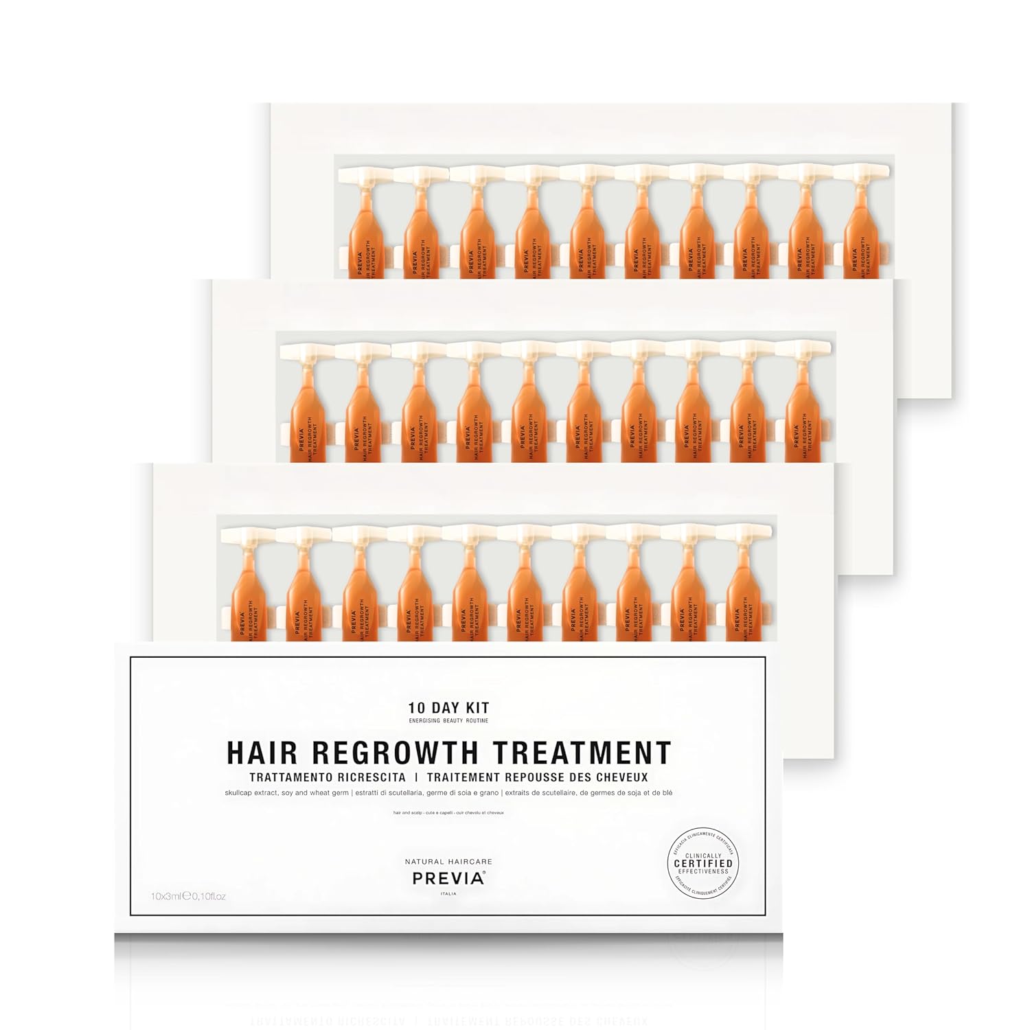 PREVIA Hair Regrowth Treatment | Formulated with Skullcap Extract, Soy & Wheat Germ | Clinically Proven Formula for Thicker & Stronger Hair | Pack of 3 (10x 0.10 Fl Oz)
