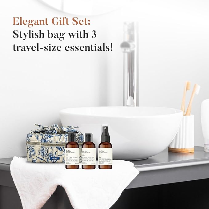 Dusa Santal Gift Set: Room Spray Santal Fragrance (2 oz), Premium Hydrating Hand Cream (2 oz), Soothing Hand Soap & Toile de Jouy Makeup Pouch – Ideal Luxurious Gift for Mothers Day