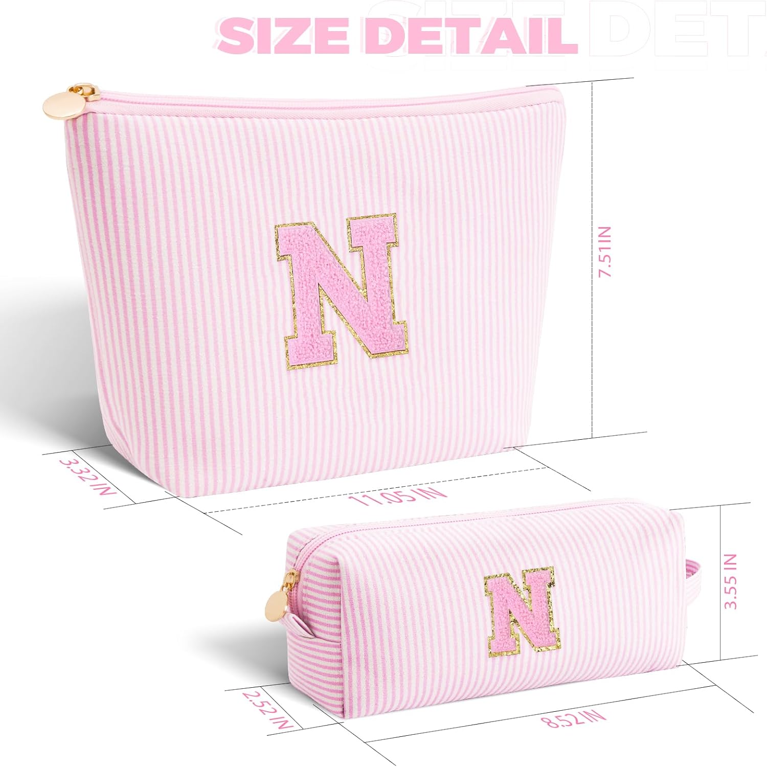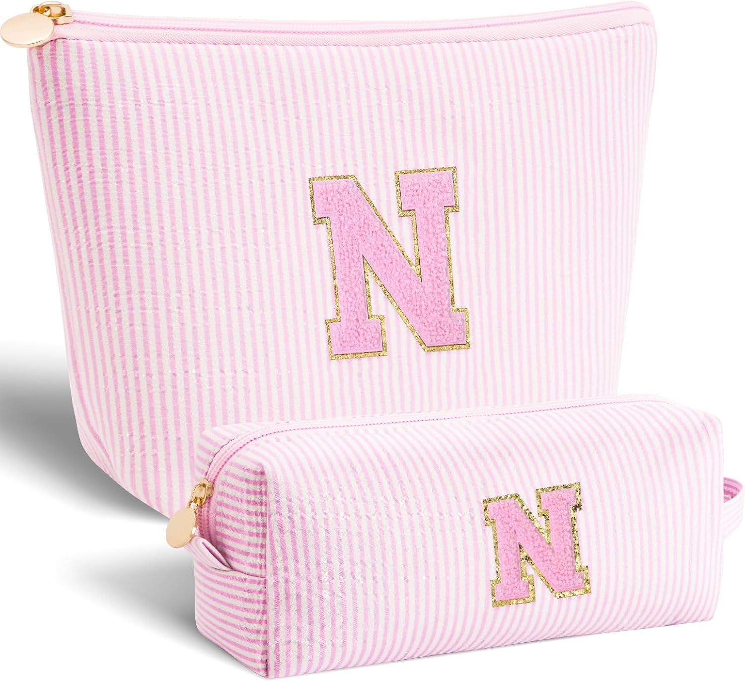 Personalized Makeup Bag for Women Girls - Fashion Cosmetic Bag Trendy Travel Toiletry Bag with Initials Letter - Teen Gifts - Pink,N