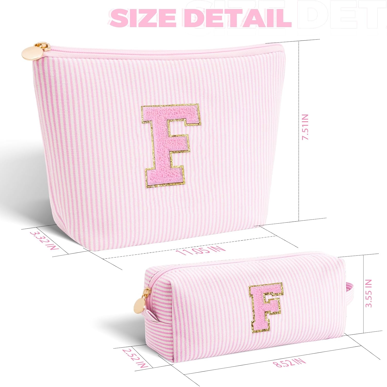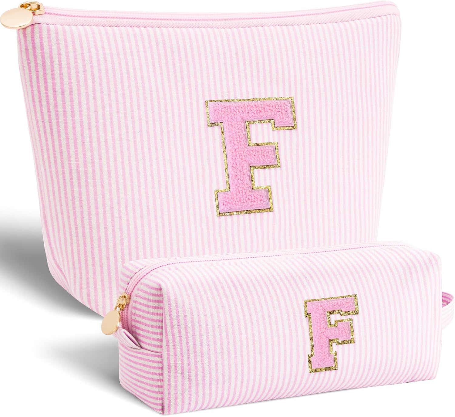Personalized Makeup Bag for Women Girls - Fashion Cosmetic Bag Trendy Travel Toiletry Bag with Initials Letter - Teen Gifts - Pink,F