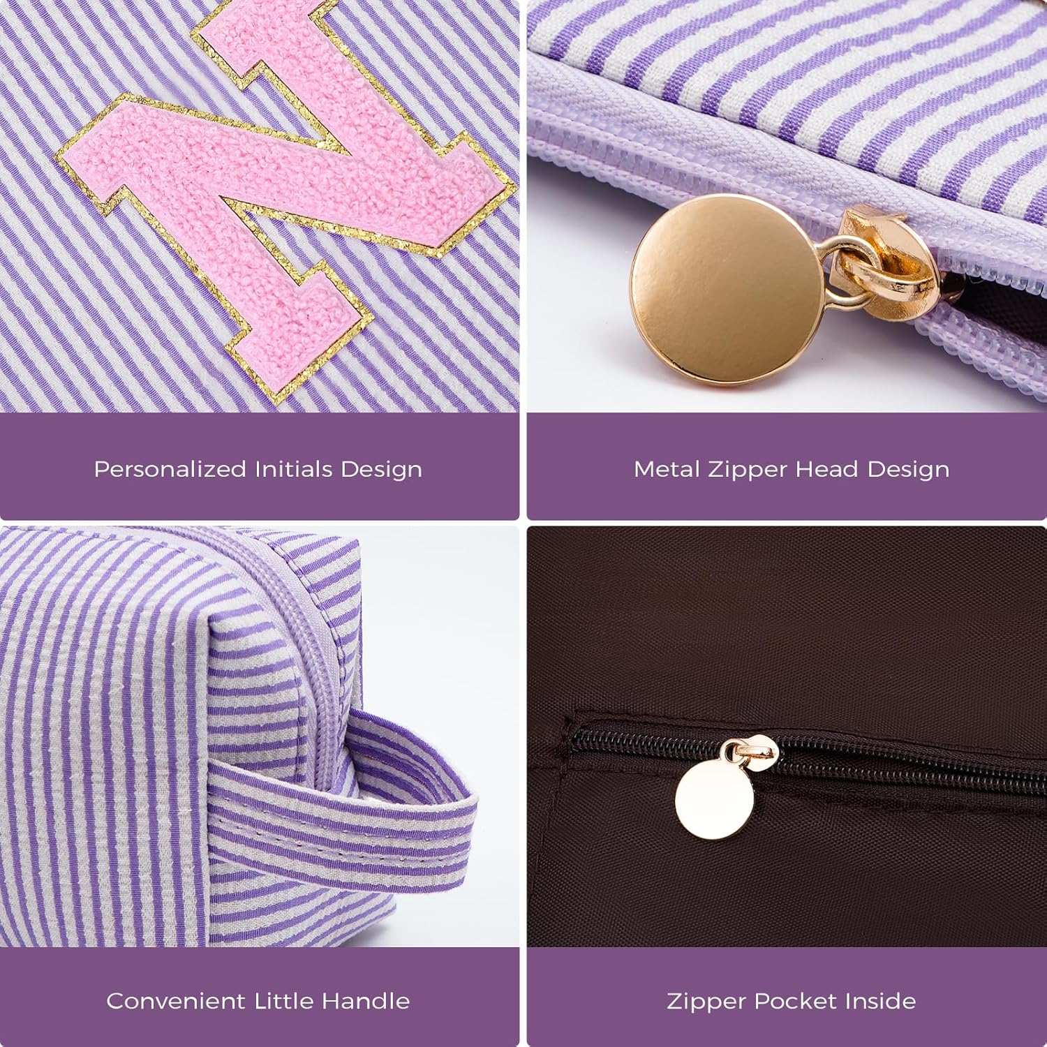 Personalized Makeup Bag for Women Girls - Fashion Cosmetic Bag Trendy Travel Toiletry Bag with Initials Letter - Teen Gifts - Lavender,N