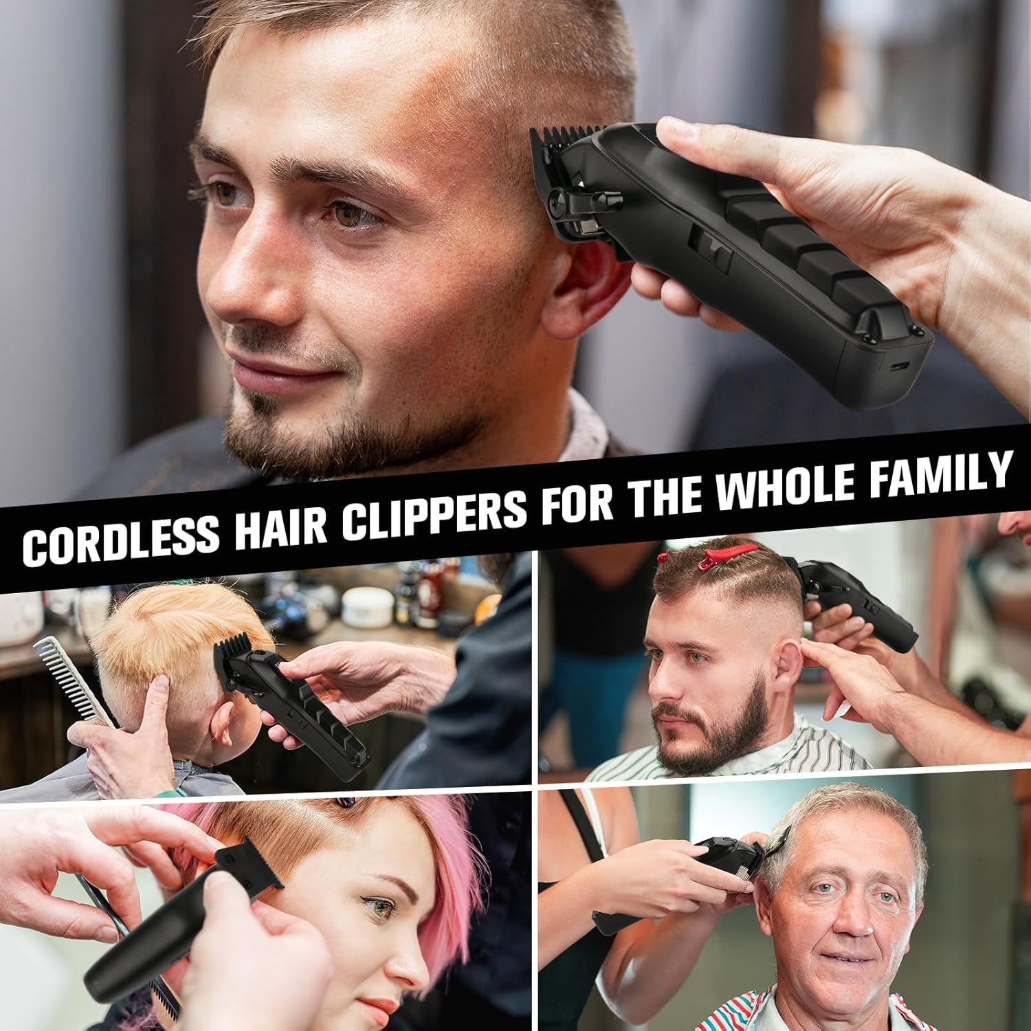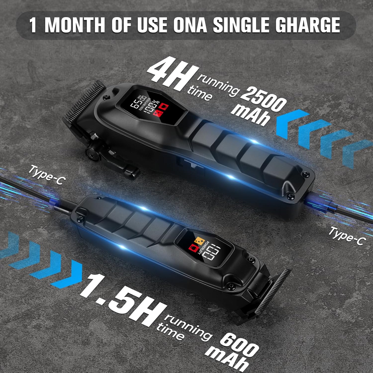 - 【Premium and Powerful】Made of high-quality ABS material and exquisite craftsmanship, the hair clippers for men kit is sturdy, wear-resistant and long-lasting. Equipped with a powerful and advanced electromagnetic motor, it provides a large amount of power and speed without generating heat or noise, allowing you to enjoy an efficient and quiet hair trimming experience.