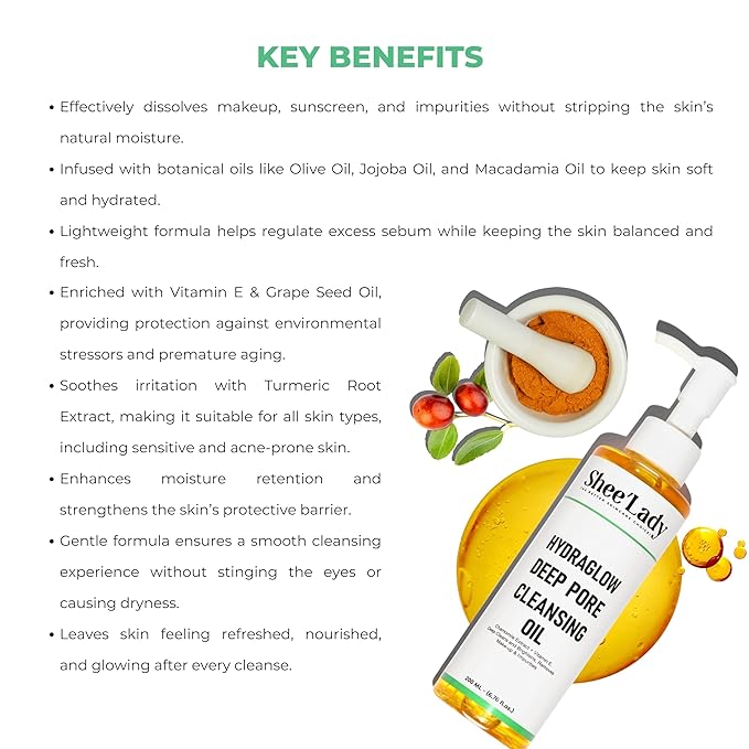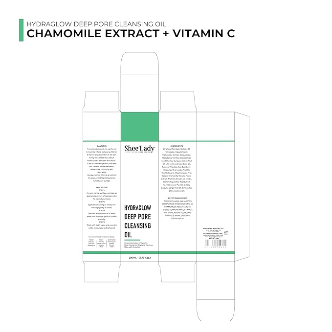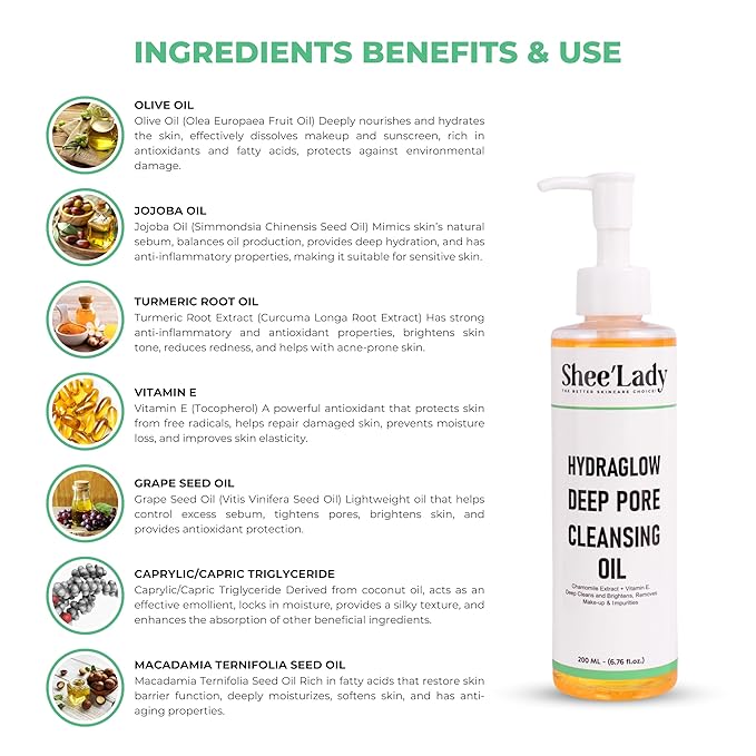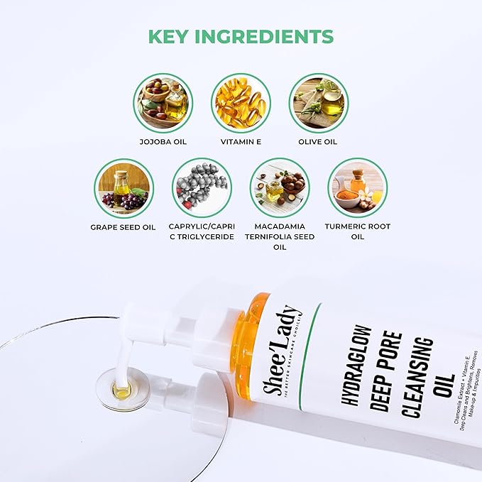 Shee'lady Hydraglow Deep Pore Cleansing Oil, limpiador facial en aceite – Best Cleansing Oil for Face, Blackhead & Makeup Remover Korean Skin Care, 6.76 fl oz (200ml)