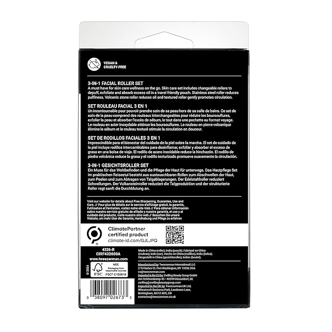 - Tweezerman's 3-in-1 Skincare Set is essential for self-care. This versatile beauty tool massages, exfoliates, and absorbs excess oil for radiant skin, always. Refrigerate the roller prior to use for a cooling and depuffing effect.