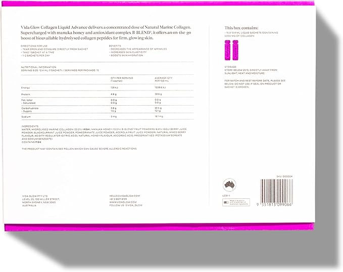 - HIGH-POTENCY COLLAGEN PEPTIDES: Each serving delivers 5g of Vida Glow’s Natural Marine Collagen to support your skin, hair, and nails, providing visible results in a delicious berry-flavored liquid.