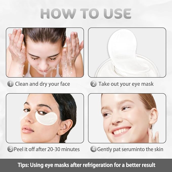 - [Effortless Skincare, Convenient Results] Designed for easy use, these under-eye patches absorb quickly, making skincare simple and effective. Clean your face, place the patches under your eyes, and leave them on for 20 minutes. Use daily or as needed for refreshed and youthful-looking eyes with minimal effort