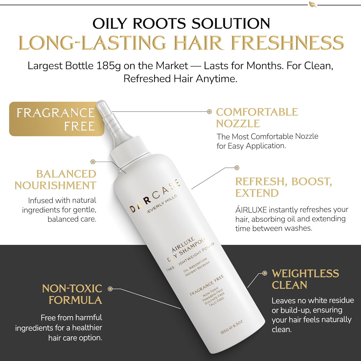 DARCASE Premium Dry Shampoo for Women - Non Aerosol Dry Shampoo Powder - Talc-Free & Hair Refreshing Powder Shampoo for Men & Women - For All Hair Types - 6.5oz - Unscented