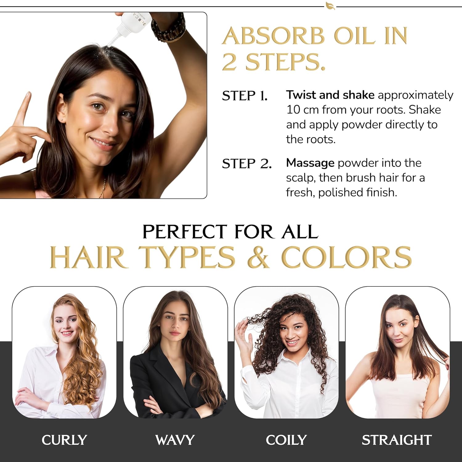 - 𝗙𝗿𝗲𝘀𝗵 𝗟𝗼𝗼𝗸 𝗪𝗶𝘁𝗵𝗼𝘂𝘁 𝘁𝗵𝗲 𝗥𝗲𝘀𝗶𝗱𝘂𝗲: The ultra-fine dry shampoo powder blends seamlessly into your roots, leaving hair soft, weightless, and free of chalky buildup. Its lightweight formula refreshes without leaving residue, even on darker hair, while absorbing excess oil for a naturally clean look. Perfect as a dry shampoo for any hair, a quick refresh for curly styles, or a travel essential for effortless touch-ups on the go.