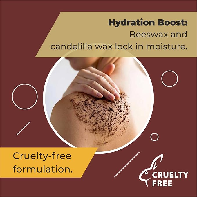 - Gentle and Skin-Softening Formula – Crafted with Beeswax and Candelilla Cera, this scrub forms a protective barrier that locks in moisture while soothing and softening the skin. These natural waxes ensure a luxurious, spa-like feel, leaving your skin smooth and velvety.