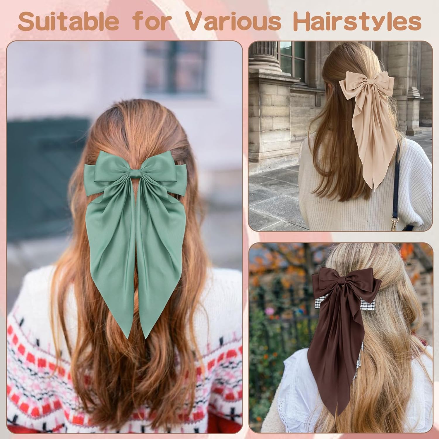 - LARGE SIZE: 14.96*7.88 inches large hair bows clips. Perfect for adorning all kinds of hairstyles, short hair, long hair, fine hair, thick hair, straight hair, curly hair and so on. These hair bows are very cute, they can be perfectly fixed in your hair and won't come off when you wear them all day, you don't need to worry about your hairstyle getting messed up at all!