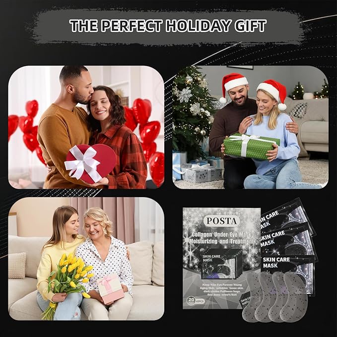 POSTA 20Pairs 40Pcs Collagen Eye Mask, Glitter Under Eye Patches for Dark Circles and Puffiness, Hydrating Eye Skincare Reduce Wrinkles and Fine Lines, Eye Gels Pads for Women and Men