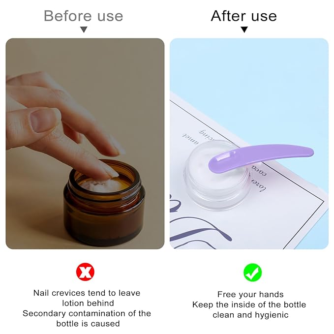 - Durable & Hygienic Material: Made from high-quality, non-porous plastic, these cosmetic spatula mini are easy to clean and resistant to stains or odors. Make up spatula ensure a hygienic application of your favorite products, preventing contamination and extending the shelf life of your skincare.