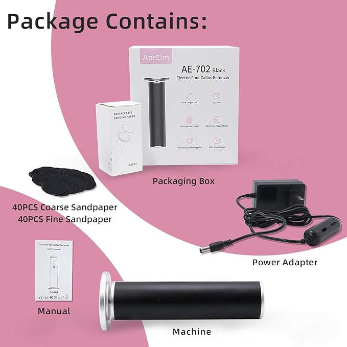 - 80 PCS Replacement Sandpapers: Includes 40 pieces of fine sandpaper and 40 pieces of coarse sandpaper, offering versatility for different foot care needs