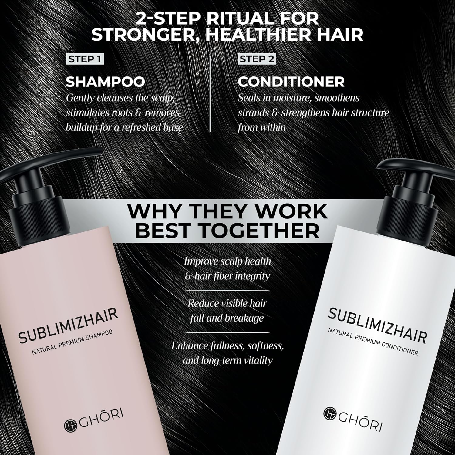 - Ultimate Hair Transformation: Ghori Sublimizhair Shampoo and Conditioner work together to cleanse, hydrate, and revitalize from root to tip, giving you silky, shiny, and resilient hair.