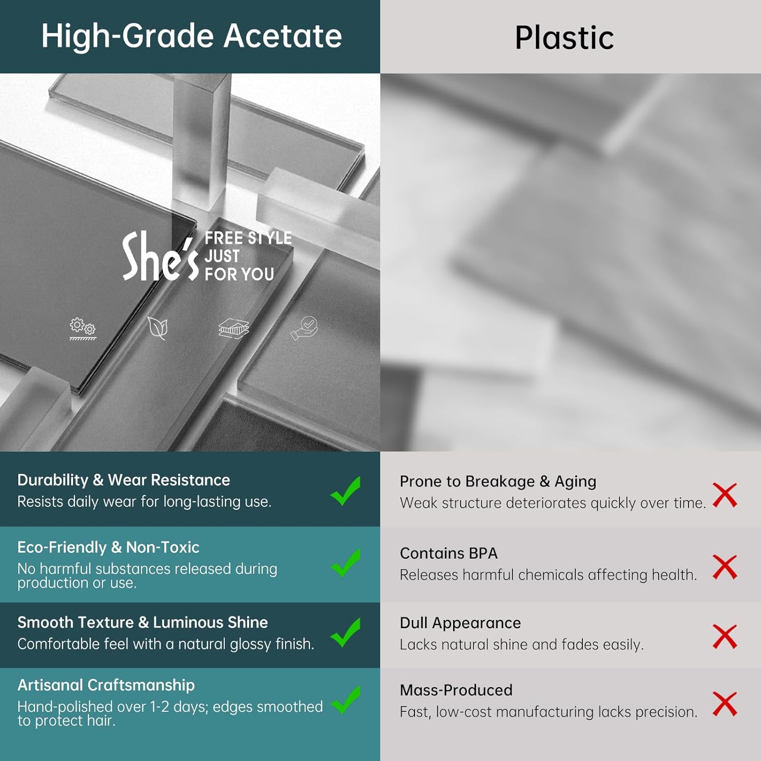- 【High-Quality Material】Made of acetate resin, this hair barrette is not only durable but also has a smooth and lustrous finish. The material is carefully selected to provide a premium feel and long-lasting use.