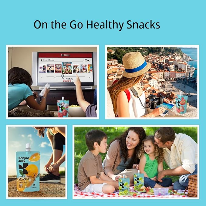 - Refreshing Green Grape Jelly: Enriched with collagen peptides, the green grape konjac jelly supports skin health while offering a sweet, fruity treat.