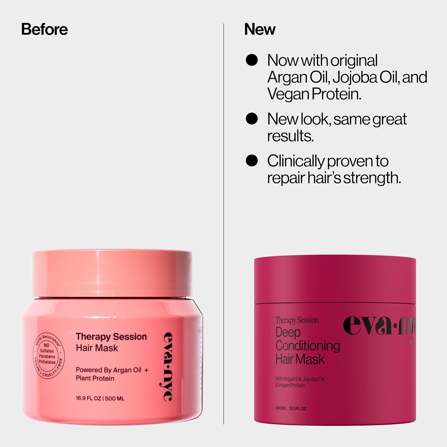 Eva NYC Therapy Session Deep Conditioning Hair Mask with Vegan Protein, Jojoba Oil + Argan Oil - Hydrate, Soften + Repair Hair Strength - Sulfate Free - Warm Vanilla Scent - 13.5 fl oz