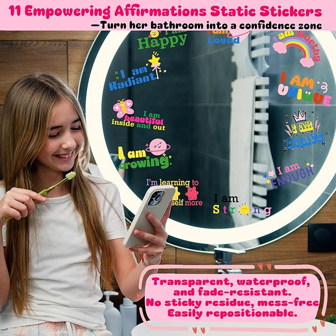 - ๐Inspiring Daily Confidence : Featuring 11 no adhesive needed positive affirmation stickers, easy to apply, remove, and reposition without leaving any sticky residue. This spa gift set turns everyday routines into moments of motivation. Perfect for a self care gifts for women experience at home.