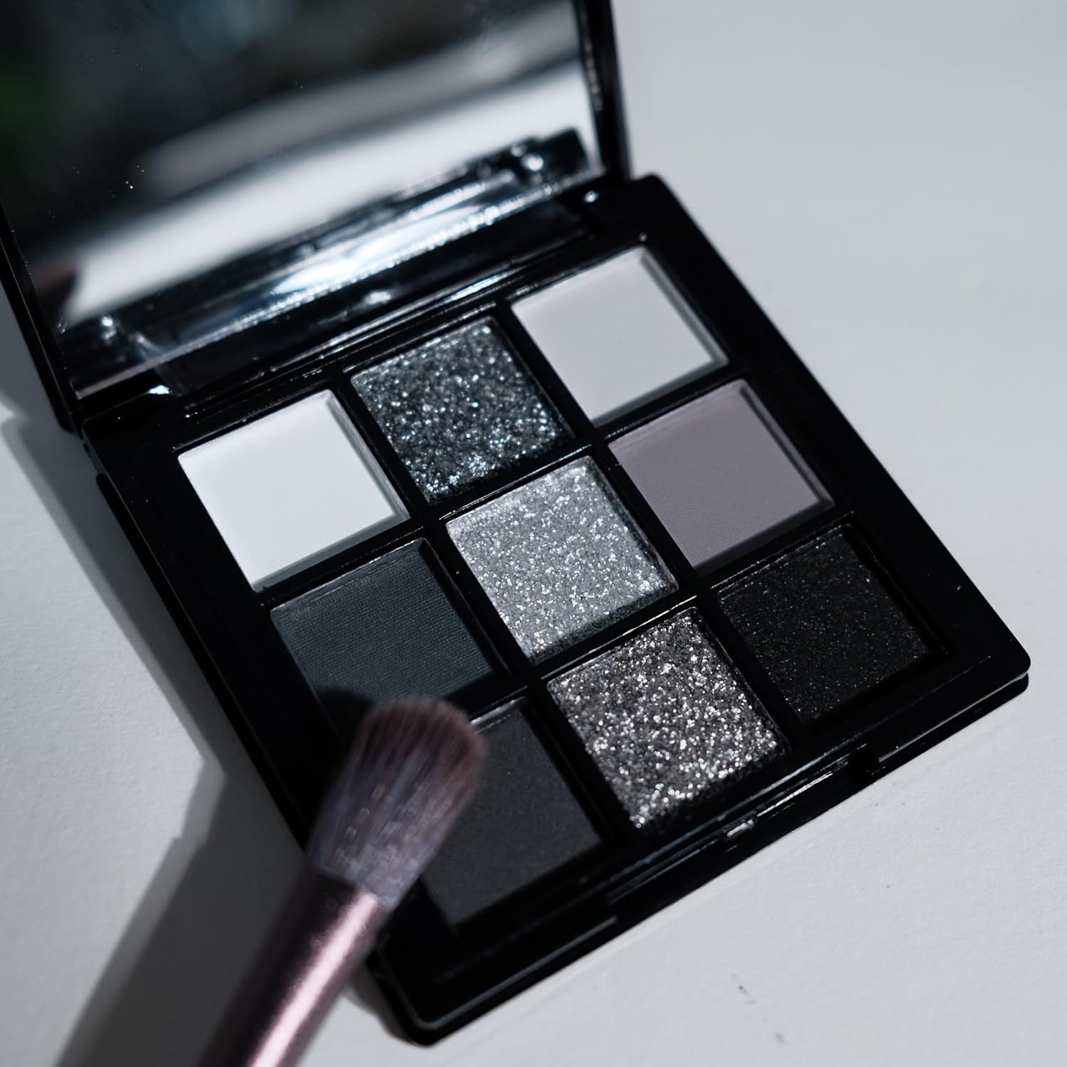 - Smokey & Glamorous Shades – A perfect mix of matte, shimmer, and glitter shades in black, silver, and gray tones for sultry, dramatic, or soft glam eye looks.